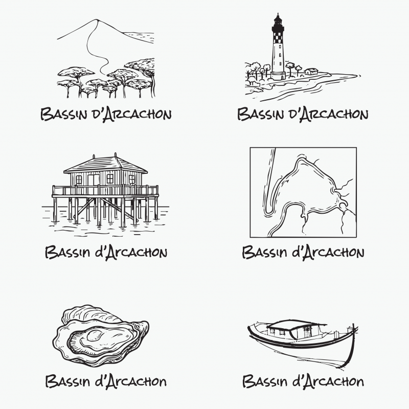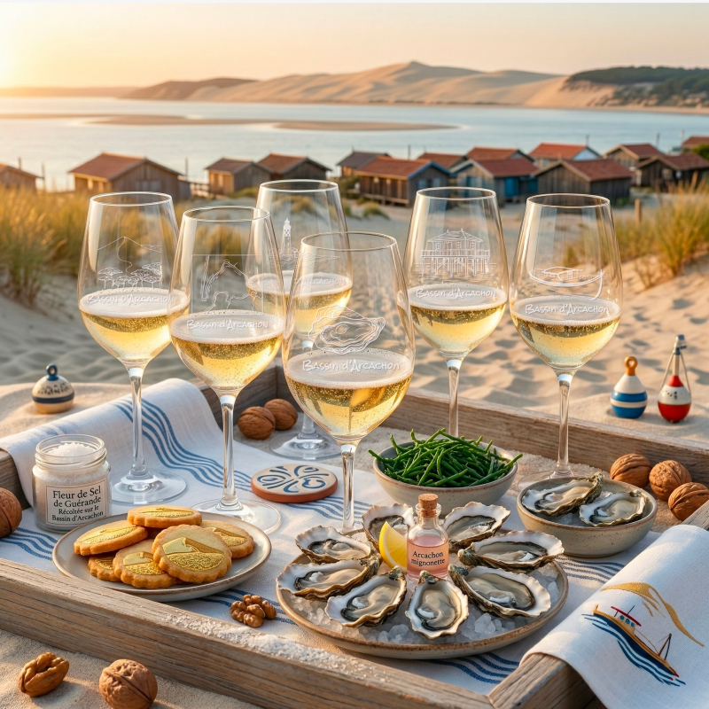 Lot de 6 verres élégants gravés sur le thème du Bassin d'Arcachon