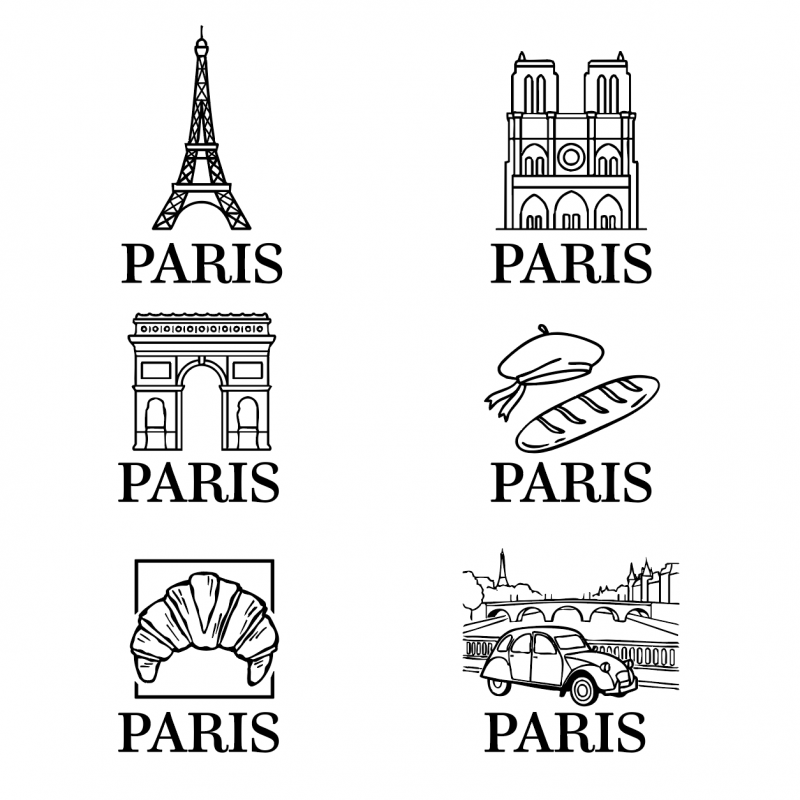 Lot de 6 verres élégants gravés sur le thème de Paris