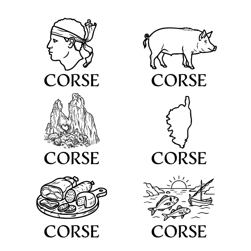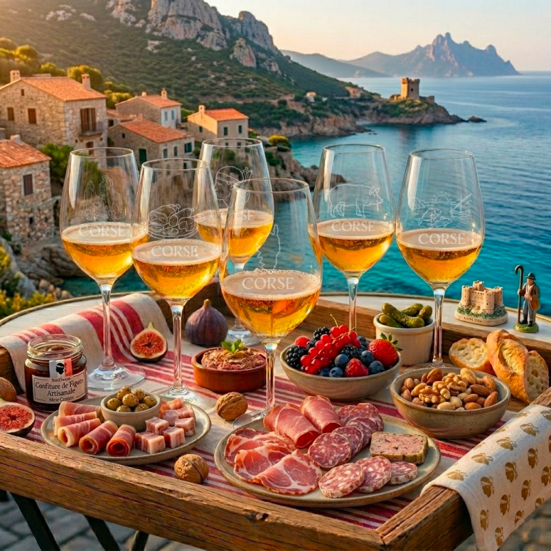 Lot de 6 verres élégants gravés sur le thème de la Corse