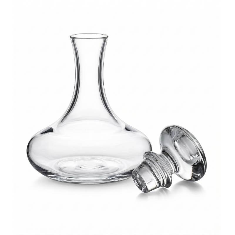 Design Raffiné & Ergonomique : Avec ses lignes fluides et son col élancé, elle assure un service précis et sans goutte. Son bouchon en verre assorti permet de protéger le vin tout en conservant son élégance sur votre table.