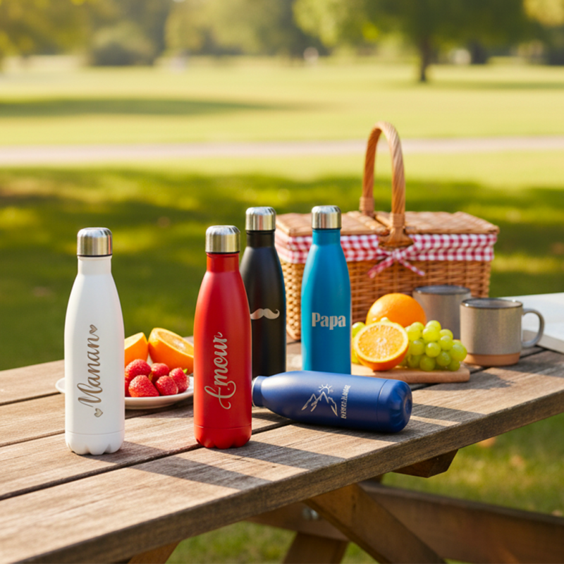 Bouteille isotherme personnalisée de 50 cl. Écologique et durable.