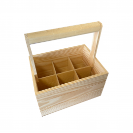 Le panier avec compartiments en pin maritime contient : - 2 x Bordeaux supérieur Rouge - 2 x Bordeaux Blanc - 2 x Bordeaux Rosé Un superbe panier-casier pour ranger ses bouteilles ou pour aller les chercher à la cave. La personnalisation du panier est une gravure laser, la personnalisation des étiquettes est la même pour toutes les bouteilles.