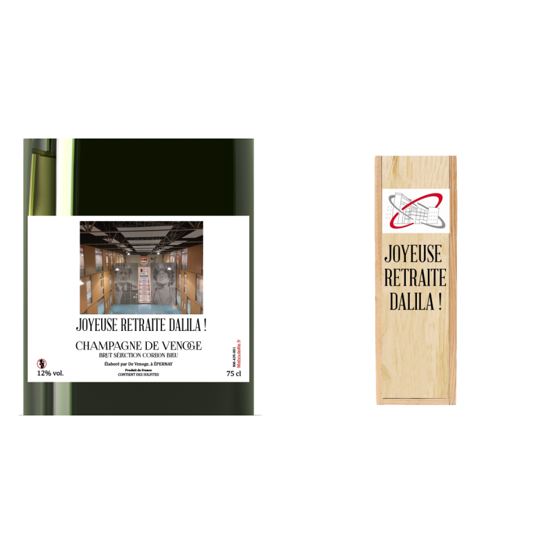Choisissez de personnaliser votre bouteille de champagne et votre coffret en bois avec un texte et une photographie de votre choix !