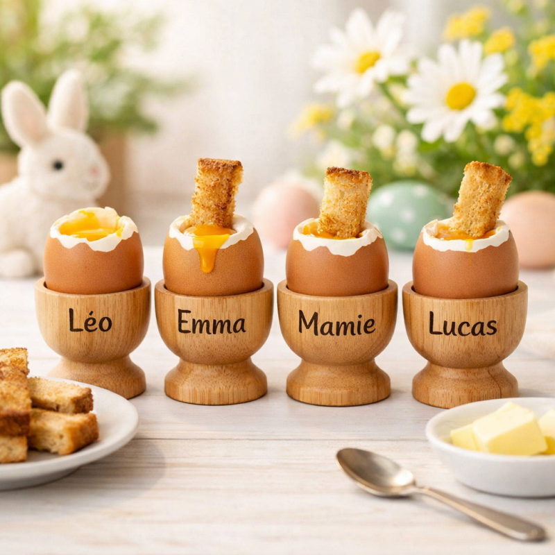Les coquetiers en bois en bois personnalisés ne sont pas de simples accessoires : ils apportent une touche naturelle, chaleureuse et conviviale à votre décoration de table.