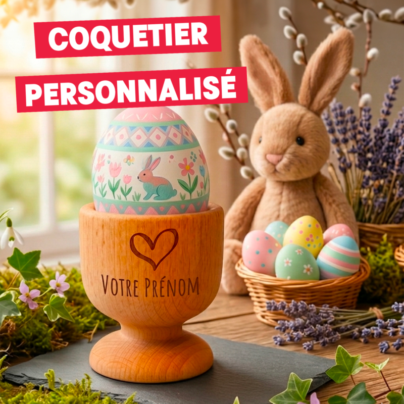 La gravure laser sur bois garantit une finition nette, précise et durable. Chaque coquetier en bois conserve son éclat au fil du temps sans s’abîmer. Vous pouvez choisir la police, le motif ou le symbole qui correspond à votre style.