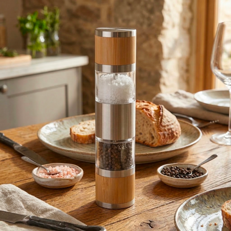 Bois et acier inoxydable.