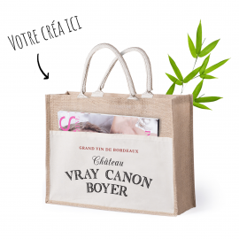 Sac en toile de jute avec poche en coton. Anses renforcées en coton blanc. Fermeture éclaire et poche intérieure Imprimez la surface avec vos textes, logos ou images pour un cadeau 100% personnalisé ! Transfert numérique couleur