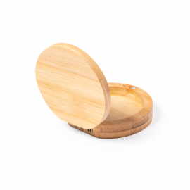 Boîte à bijoux en bambou, avec miroir intérieur et fermeture magnétique. Gravure laser sur le couvercle de la boîte. La technique de gravure utilisée est une gravure laser, elle ne permet pas un marquage couleur, c'est la couleur marron foncé qui ressortira (effet creusé/brulé).